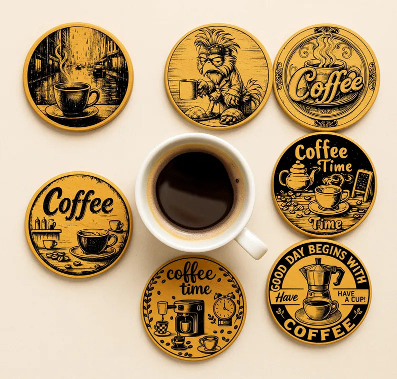 10 Coffee Coaster SVG Bundle – Laser-Ready Engraving Designs