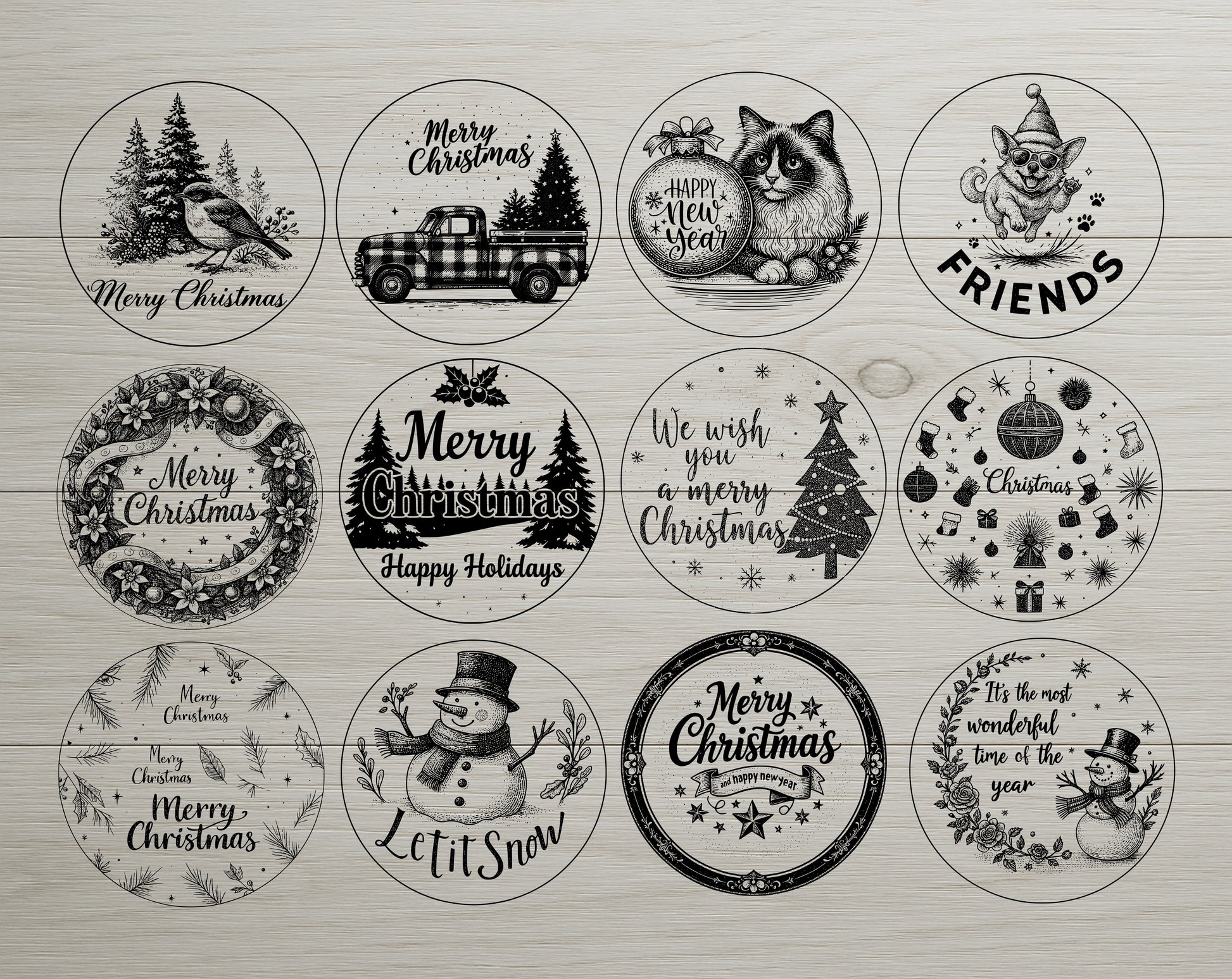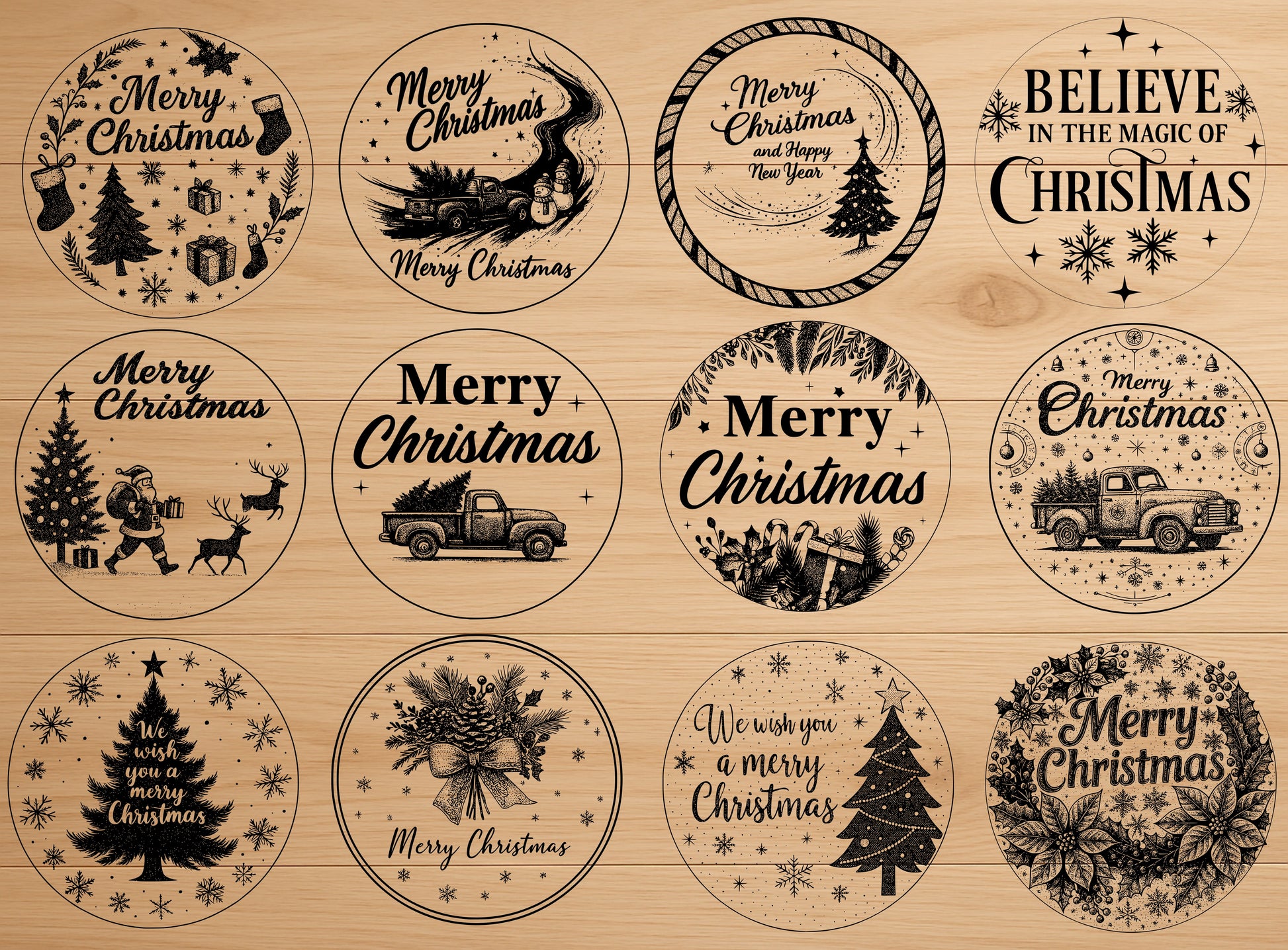Reindeer • Santa • Snowman • Christmas Tree • 2026 New Year • Vintage Truck • Festive Quotes