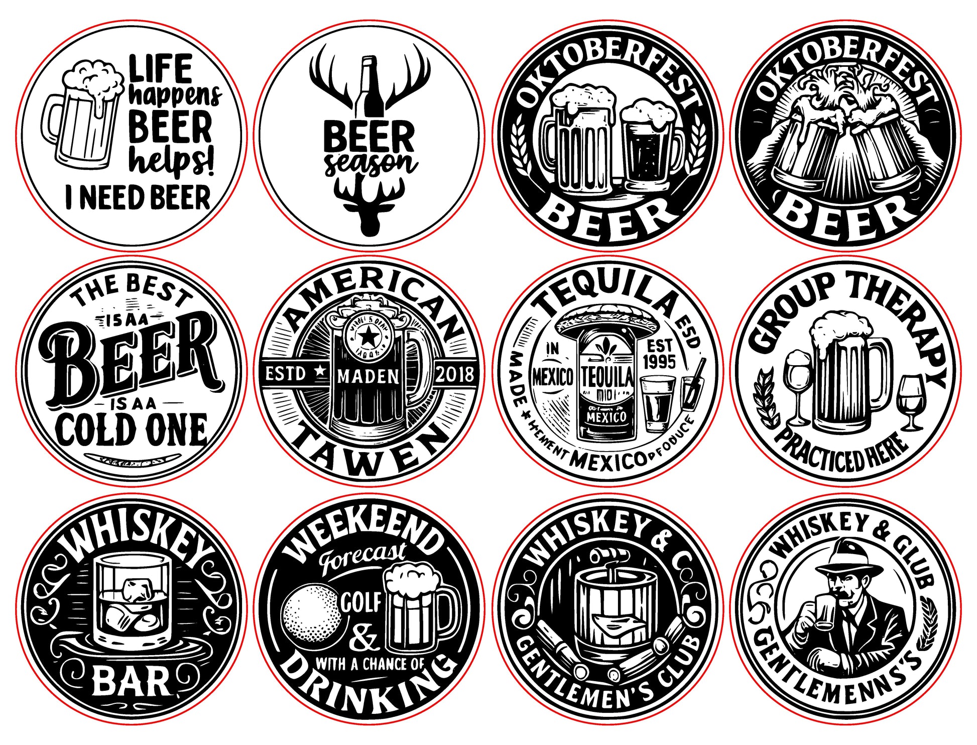 20 Beer & Whiskey Coasters SVG Bundle – Laser Engraving Designs for Men Gifts