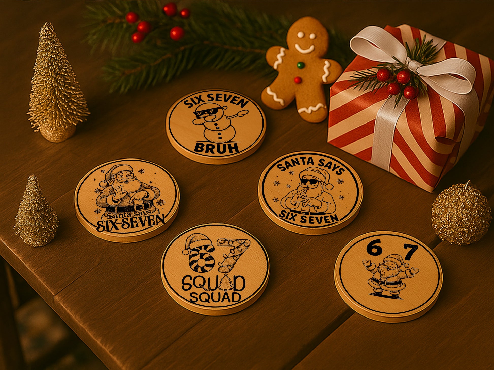 Funny Christmas 6 Coaster Bundle | Six Seven Santa SVG Set for Laser Cut | Digital Files SVG PNG JPG FunnyFilesCo